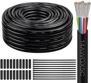 14 Gauge 5 Conductor Electrical Wire, 14 AWG Tinned Copper Stranded PVC Cable, Waterproof/Flexible/Low Voltage Extension Cord for Automotive, Marine, Solar, LED Lighting (50FT)