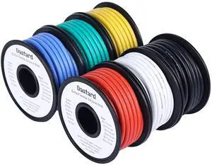 Dastard 12 Gauge Flexible Silicone Wire, 12 AWG Stranded Tinned Copper Wire 60ftRed+Black+Blue+Yellow+White+Green Each 10ft 12AWG Automotive Electrical Wire 392 600V