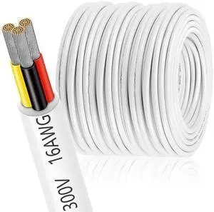 16 Gauge Electrical Wire 3 Conductor, 98.4FT 16AWG Insulated Low Voltage Stranded Tinned Copper Wire, 16/3 White Flexible Extension Cable for LED Lamp Lighting Strips Automotive Etc