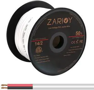 TUOFNEG Low Voltage Landscape Lighting Copper Wire 14/2-50Ft PVC Insulation, 0.33" x 0.165" Diameter 2x14AWG Cord, 176F Rated UL Listed Ideal for Landscape Lighting Projects
