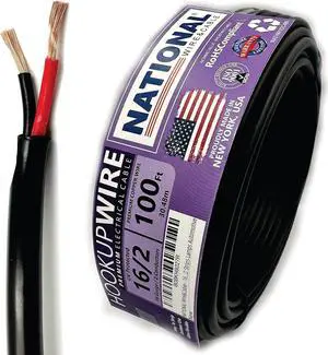 NATIONAL Wire & Cable 16 AWG 2-Conductor Premium Copper Wire, 100 ft, Stranded | Made in USA, Heavy-Duty Flexible Jacket | LED, Lights, DIY Projects, Low Voltage Wiring, Indoor and Outdoor Use