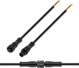 BTF-LIGHTING 3 Pin Electrical Metal nut Connector 18AWG IP68 Male Female Connector 7.87in/20cm Extension Cable for Car,Truck,Boat,Indoor/Outdoor LED Strip Lights/String 15mm Metal Nut Small Size