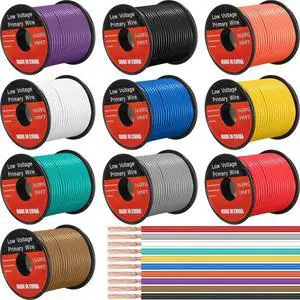 Gisafai 10 Pcs 16 Gauge Wire 100 ft Per Roll (1000 ft Total) Automotive Primary Wire Spools Copper Clad Aluminum Primary for 12v Automotive Harness Car Audio Video Wiring