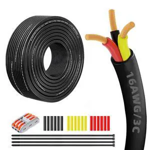 16 Gauge 100% Pure Copper 3 Conductor 16/3 Flexible Electrical Wire 30FT, UL2464 16AWG 3 Core Electrical Cable for Automotive, Marine,Boat,LED Lighting, Garden Lighting,etc