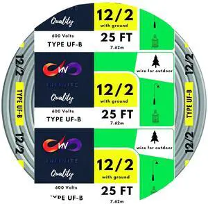VN Infinite quality 12/2 UF-B Wire Gray Solid Underground Feeder Cable (25 Ft)