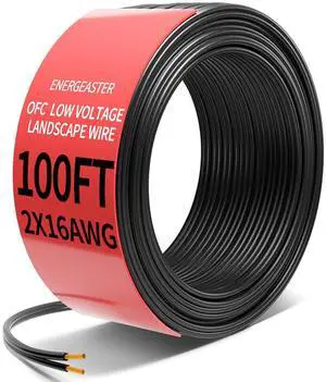 Energeaster 100FT 16/2 Low Voltage Landscape Wire,16 Gauge 2 Conductor,Low Voltage Wire Outdoor Direct Burial Waterproof,Pure Copper for Landscape Lighting Lamp Cord