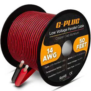 G-PLUG 14 AWG Electrical Wire 50ft Tinned Copper Cable with Flexible PVC Insulation, Heat & Corrosion Resistant for Automotive, Marine, Solar, RV, and Outdoor Applications