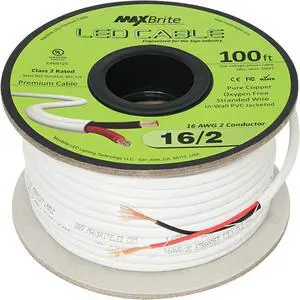 100 ft. 16AWG Low Voltage LED Cable 2 Conductor Jacketed in-Wall Speaker Wire UL Class 2 Certified