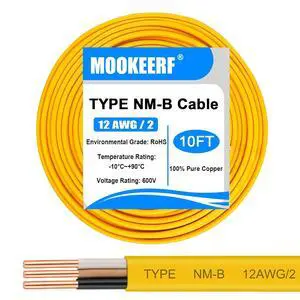 12/2 Wire with Ground - 10FT 12 Gauge NM-B Non-Metallic Sheathed Cable 100% Pure Copper 12 AWG 2 Conductor Residential Indoor Wire for Outlets, Switches, Other Loads and Lighting Wiring Projects etc.