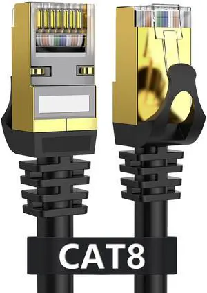 BUSOHE Cat 8 Ethernet Cable 40 FT, 40Gbps 2000Mhz High Speed Flat Cat8 Cable Patch Cord with Gold-Plated RJ45 Connector, LAN Network Internet Cable with 30 Clips for Router/Gaming/Computer, S/FTP