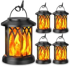 4 Pack Solar Lantern Outdoor Lights, Upgraded Flickering Flame Solar Lanterns Lights Outdoor Waterproof, Hanging Lantern Decorative, Solar Powered Lanterns for Yard Patio Path Tree Garden Decor