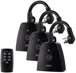 HBN Outdoor Wireless Remote Control Outlet Plug,Weatherproof Heavy Duty Power Strip,Indoor Electrical Plugs for Light Switch,6-inch Cord,100ft Range, ETL Listed(15A,Dual 3-Prong Outlets,3Packs)