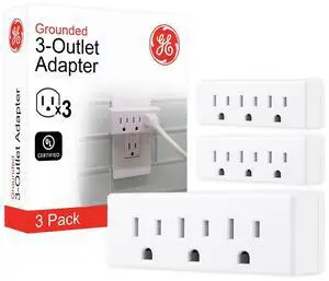 3-Outlet Extender, 3 Pack, Grounded Wall Tap, 3-Prong, Multiple Plug, Power Splitter, Cruise Essentials, Use for Home Office School Dorm, UL Listed, White, 47884- Sports Team: 2 Packs