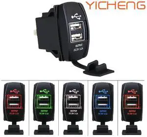 A11 12V 24V 3.1A Rocker Switch Panel Mount Double Port Dual USB Charger Charging Socket Red Backlight