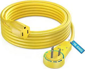 Maximm Cable 10 Feet 360° Rotating Flat Plug Extension Cord/Wire, 3 Prong Grounded Wire 16 Awg Power Cord - Yellow - UL Certified