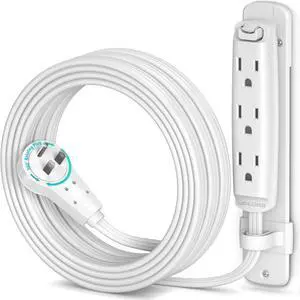 Maximm 360 Degree Rotating Flat Extension Cord 10 Ft Multi 3 Outlet Power Cord with Mounting Bracket, Grounded 16 AWG UL Certified, White