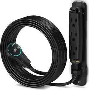 Maximm Cable 10 Feet Flat Plug Extension Cord/Wire, Multi Outlet - 3 Prong Angled Plug Extension Cord - Black UL Certified