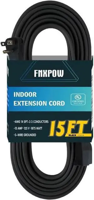UltraPro Outdoor Extension Cord, 15 Ft, Heavy Duty Extension Cord, Double Insulated, Grounded, 16 Gauge, 3 Prong Extension Cords, General Purpose Long Extension Cord, UL Listed, Black, 36824- Model #: Lan16339706969800
