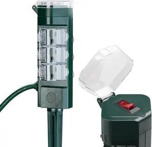 Outdoor Power Strip Weatherproof, 50 FT Extension Cord with Power Stake, 6 Grounded Outlets for Outdoor Lights, 15A/1875W, ETL Listed