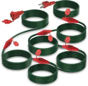 Outdoor Extension Cord with Multiple Outlets - 50 Ft - 6 Outlets Plugs - Weatherproof Multi Outlet Extension Cord - 16/3 Gauge SJTW Green Wire for Christmas, Holiday, Landscaping Light, ETL Listed