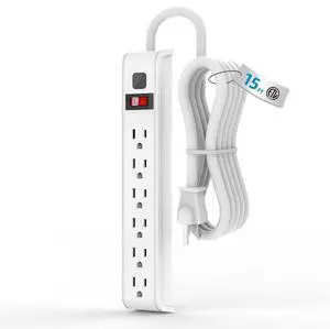 Surge Protector Power Strip, 15 Feet Extension Cord, 600 Joules Surge Protection, Multiple Protection 6 Outlet Strip, 14 AWG Cord, 15A/1875W, ETL Listed