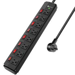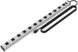 12 Outlets Metal Power Strip,Mountable Heavy Duty Power Strip with 6FT Long Extension Cord with Circuit Breaker,15A 125V 1875W, ETL Listed