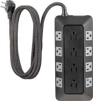 UltraPro Adapt 12-Outlet Surge Protector, 6ft Braided Heavy Duty Extension Cord, Flat Plug Power Strip, 3540 Joules, Black, 74542