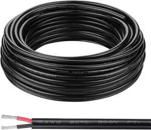 18 awg 0.75mm² Silicone Electrical Wire 2 Conductors Cores Wire 20ft 18/2 Gauge Soft and Flexible Hook Up Stranded Tinned Copper Wire