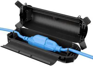Outdoor Extension Cord Cover, Weatherproof Electrical Connection Box with Lockable Latches and Mounting Holes for Outdoor Sockets, Plugs, Outlets, Holiday Lighting, Power Tools, Black