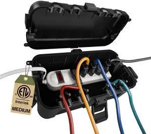 Medium Outdoor Electrical Box(10.6x5.5x4.5inch),Weatherproof Connection Box w/6 Cable Entry,IP54 Waterproof Extension Cord Cover Protect Power Strip,Timer,Plug,Holiday Lights,Black