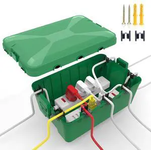 The Original Weatherproof Connection Box Indoor & Outdoor Electrical Power Cord Enclosure for Timers, Extension Cables, Holiday Lights, Power Tools, Fountains & More Size Small Green