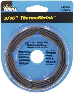 IDEAL 46-604 Heat Shrink Tube, Thin Wall, 2:1 I.D. Shrink Ratio, 0.21 in I.D.