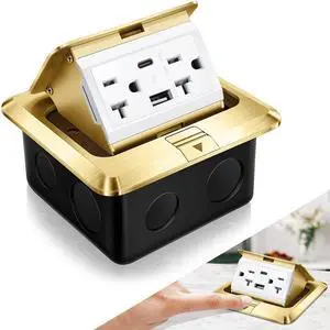 Pop up Floor Outlet Floor Kit Waterproof Electrical Outlet Cover Box with 4.8A USB A & Type C Charge and 20 Amp Tamper Resistant Plug Receptacle Box for Countertop Office Home (Gold)