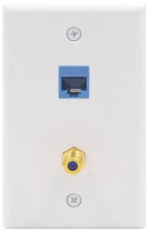Ethernet Coax Wall Plate (UL Listed), 2-Port CAT6 Keystone Coupler and 3GHz Gold Plated Coax Keystone Jack Insert Wall Plate