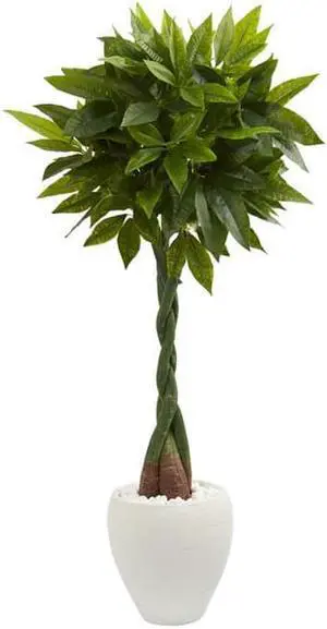 Nearly Natural 5720 5 ft. Money Artificial Tree in White Oval Planter - Real Touch