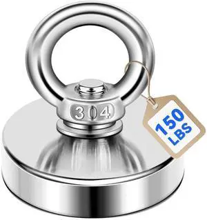 Strong Neodymium Fishing Magnets 150 Lbs(68 KG) Pulling Force Rare Earth Magnet with Countersunk Hole Eyebolt Diameter 1.42 inch(36 mm) for Retrieving in River and Magnetic