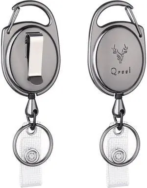2 Pack Retractable Keychain Heavy Duty Carabiner Badge Holder, Tactical ID Badge Reel with 32 Steel Retractable Cord, 8.0 OZ