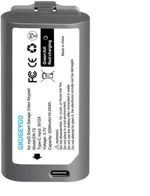 GKUGEYGO Battery Replacement for myQ Smart Garage Video Keypad, Rechargeable Quick Release Battery for myQ
