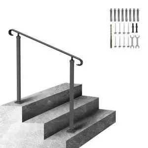 Single Post 1-2, Black Steel Railing 441LBS Capacity Baking Varnish Iron Stairs Stylish Handrails for Outdoor Steps with Expansion Bolts & Drill Bit