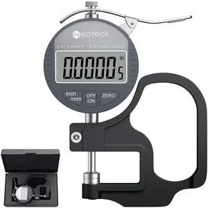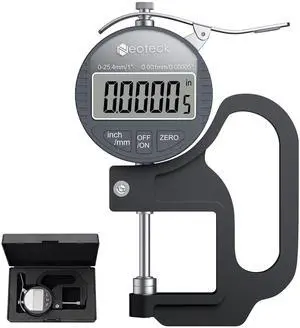 KEHIPI Digital Thickness Gauge 1inch/25.4mm,0.0005inch/0.01mm LCD Display with Inch/MM Conversion One-hand Quick Press Thickness Measuring Tool for Measuring Leather Paper Fabric Film etc.-Black