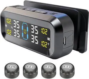 Tire Pressure Monitoring System with Solar & USB Charger-TPMS with 4 External Sensors & 6 Alarm Modes, LCD Display Screen, Real-Time Pressure & Temperature Monitor for Sedan, SUV, MPV, Trailer 0-99PSI
