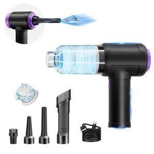 Compressed Air Duster & Vacuum, 77000 RPM Cordless Air Duster, 3 in1 Air Blower, Detachable Battery, Replaces for Air Cans, Keyboard Cleaner, Vacuum Cleaner for pc