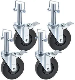 4 Pack 5" Heavy Duty Scaffolding Rubber Swivel Caster With Dual Locking 1" Solid Round Stem 280LBS Capacity Per Wheel