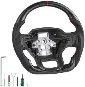 Steering Wheel for 2021-2024 Ford F150, Carbon Fiber Steering Wheel D-Shaped Flat-Bottom with Heating Function, Leather Grip with Non-Slip Texture, Accessories Replacement for Ford F150, Black
