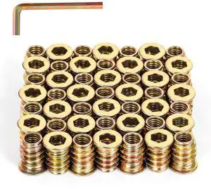M8-1.25 x 20mm Threaded Inserts for Wood, Hex Drive Wood Nut Inserts, Exceptional Threaded Insert Nuts for Furniture, Wooden Products & Models, 50 PCS