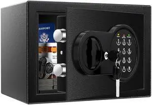 TIGERKING Digital Keypad Safe Box, Small Safe Money Safe Lock Box Cabinet Safes, Solid Alloy Steel Office Hotel Home Mini Safe for Cash, Jewelry, Documents,0.5 Cubic Feet