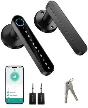 Fingerprint Door Lock, Smart Door Knob with Keypad Keyless Entry, Biometric Door Lock with App Control & Passcode, 5-in-1 Electronic Door Handle with Key & Key Cards for Bedroom, Office, Apartment