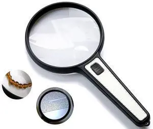 SOEWIOU 98110 LED Reading Magnifier, 10X Optical Acrylic Lens, 110mm Diameter Dual Lens Magnifying Glass