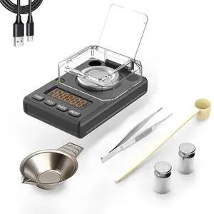 Milligram Scale 100g x 0.001g, MG Powder Scale with Selectable Auto Off, Built-in Bubble Level, 20g Calibration Weight Included, USB/Battery