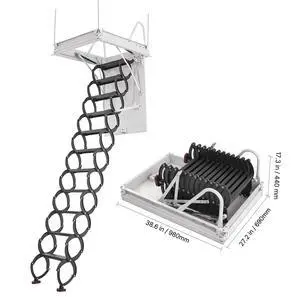 Attic Ladder, 660LBS/299.4KG Capacity, Fits 9.5 to 10.2 ft Ceiling Height and 39.4 x 27.5 inch Opening Size, Alloy Steel Pull-Down Retractable Ceiling Stair with Pulling Rod for Attic Loft Roof